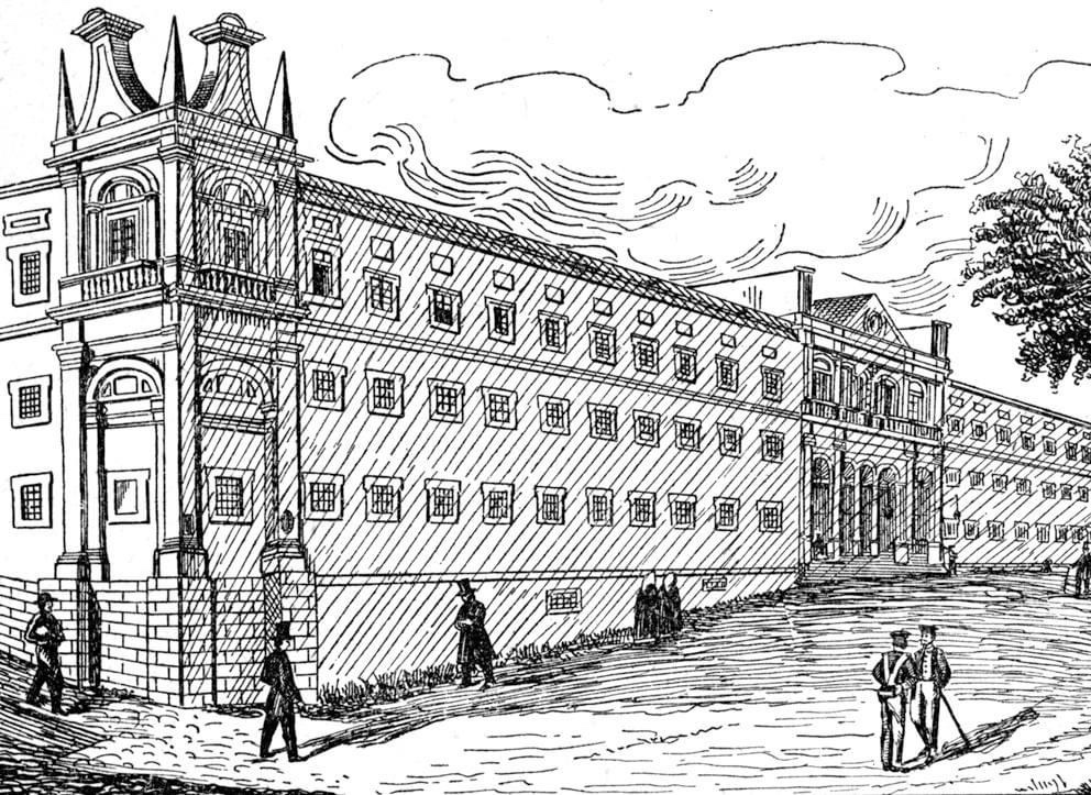 Na imagem, o Palácio das Cortes, em 1843. Litogravura de Michellis publicada “Universo Pittoresco”.