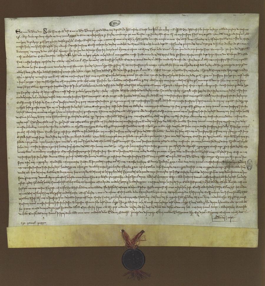 Carta Régia do Rei D. Dinis, datada de 1 de Fevereiro de 1317, nomeando o genovês Manuel Pessanha como primeiro Almirante do Reino.