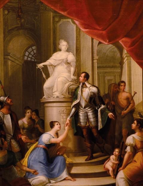Na imagem, alegoria à Instituição da Academia das Belas Artes, de Norberto José Ribeiro, 1840.