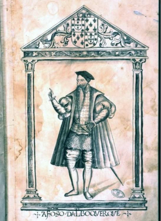 Na imagem, retrato de Afonso de Albuquerque, no Livro segundo das Lendas da Índia, por Gaspar Correia.