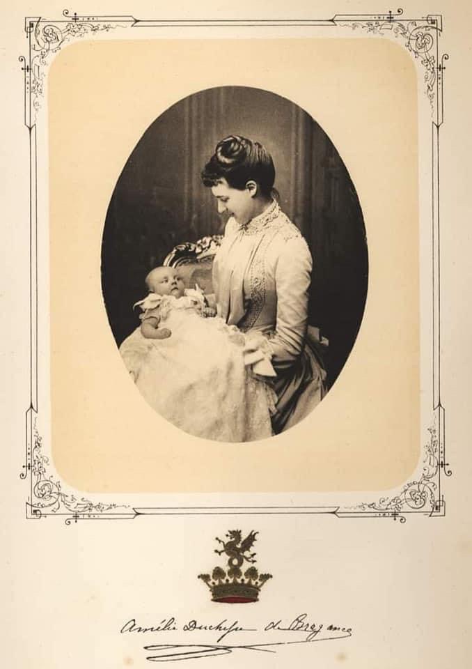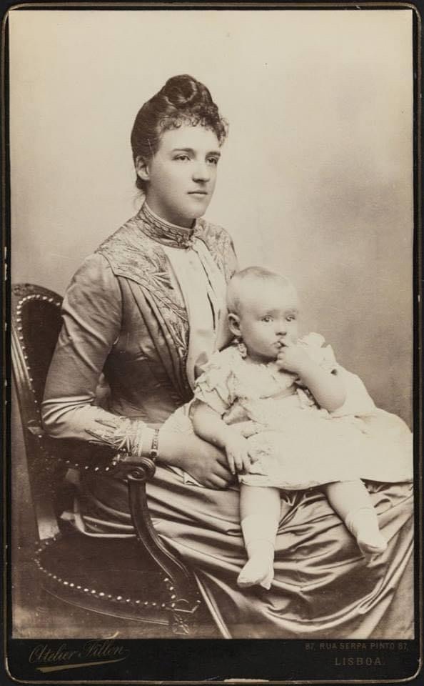 📷 Princesa D. Amélia, Duquesa de Bragança, futura Rainha D. Amélia com o filho príncipe D. Luís Filipe ao colo, 1887.