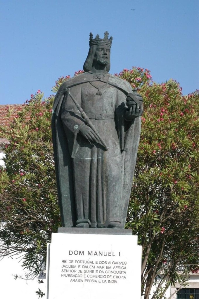 Na imagem, estátua na vila natal de D. Manuel I, evocativa do 5.º Centenário do seu nascimento, inaugurada a 31 de Maio de 1970. D. Manuel I está representado de pé, olhando o horizonte. Nas suas mãos sustenta a esfera armilar e o ceptro do poder real.